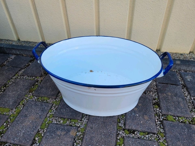 Alte DDR Emaille Wanne retro vintage blau weiß pflanzkübel veb