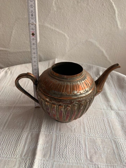 Alte, sehr dekorative Kupferkanne / Teekanne ohne Deckel h ca. 14cm.