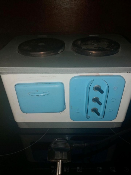 Funktionsfähiger Spielzeugofen mit Gebrauchsspuren