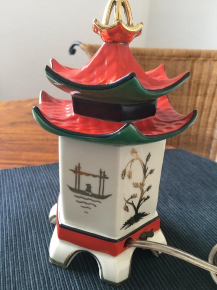 Angeboten wird dieser alte aus den 50 er Jahren stammende Rauchverzehrer aus Porzellan / Keramik in Form eines Teehauses mit Pagode. Er wird inkl. eines alten Leuchtmittel geliefert.