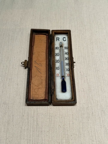 Altes antikes Thermometer im Kästchen