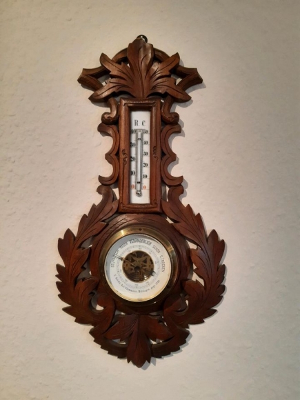 Das Barometer ist funktionsfähig, ein echter Hingucker. Es stammt aus der Schweiz. Etwas für Liebhaber.