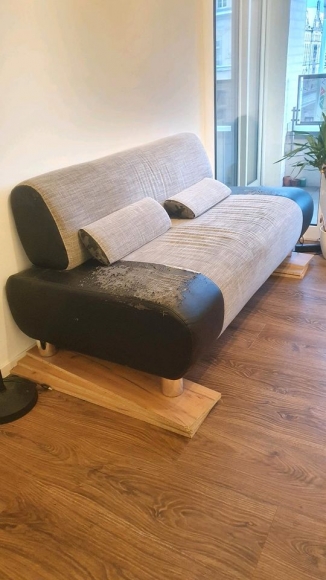 Das Sofa ist stabil und immernoch bequem. Allerdings ist die Optik nicht mehr gut. Das Kunstleder rechts und links krümelt langsam ab. Links ist eine kleine Naht offen.