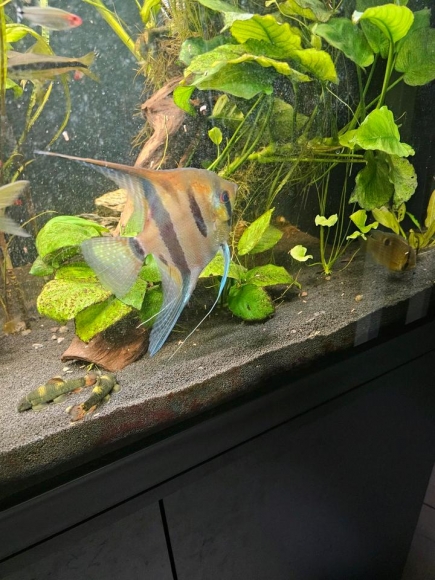 Leider verträgt er sich mit einem anderen Skalar nicht gut und sucht deshalb ein neues Zuhause das entsprechend groß ausfällt.