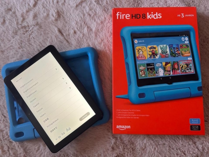 Wir bieten hier das Amazon fire HD8 kids Tablet an inklusive Schutzhülle in blau und Originalverpackung.