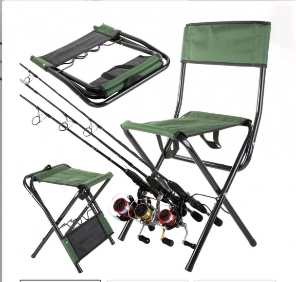 Anglerstuhl grün mit lehne und Rutenhalter 12,. Euro