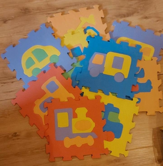 10er Set Puzzlematten Fahrzeuge, 36 Puzzlematten Alphabet und Zahlen 0-9 sowie 10 Restbestände anderer Buchstaben/ Zahlen-Puzzlematten (Ausstanzungen anders geformt).