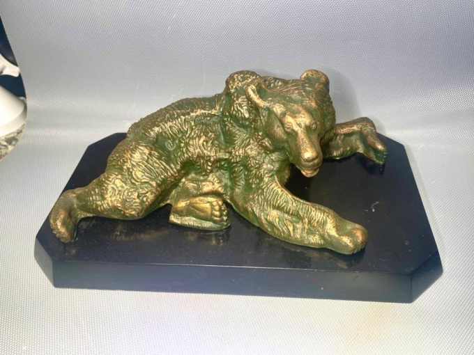 Antike Figur liegender Bär, Eisenkunstguss, Nikolai Lieberich.