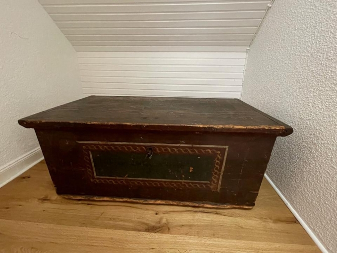 Die Truhe ist nicht restauriert und hat einige Gebrauchsspuren.