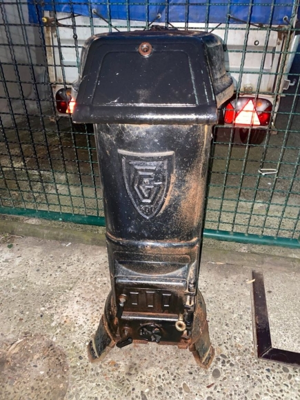 Antiker Gussofen nicht mehr funktionstüchtig. Lässt sich eventuell wieder in Gang setzen.