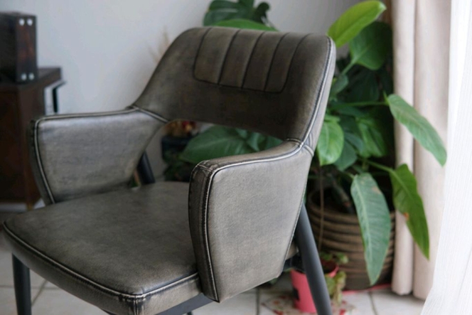 Der Stuhl im Vintage-Leder-Look mit Aussparung am Rücken ist ein stilvoller Eyecatcher!