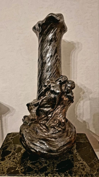 1900. Wahrscheinlich Frankreich oder Belgien. Material ist Zinn auf Terrakotta. Sie ist signiert mit A. Beer und mit 224 nummeriert. Die Maße entnehmen Sie bitte den Bildern.