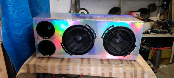 Biete hier meine alte Basskiste an. Bestückt mit 2 x Audio System Hx Sq 12 mit 2x 450 Watt Rms Belastbarkeit . Die Woofer stecken in einem berechneten Gehäuse mit 130 Liter Volumen und 2 x 10 cm Audio System Aeroport. Sind sind gebrückt auf 2 Ohm am Anschluss an der Rückseite über Gewindestangen. Die Basskiste ist vorne und oben mit einer Rainbow-Chrome Folie bezogen. Unter und in der Kiste ist eine weiße LED Beleuchtung vorhanden. Klanglich ist die Kiste super sauber und bei Bedarf sehr druckvoll. Nach Absprache ist ein probehören möglich. Aufgrund der Größe kein Versand. Die Maße : H 42cm, T 40cm, B 103cm.
