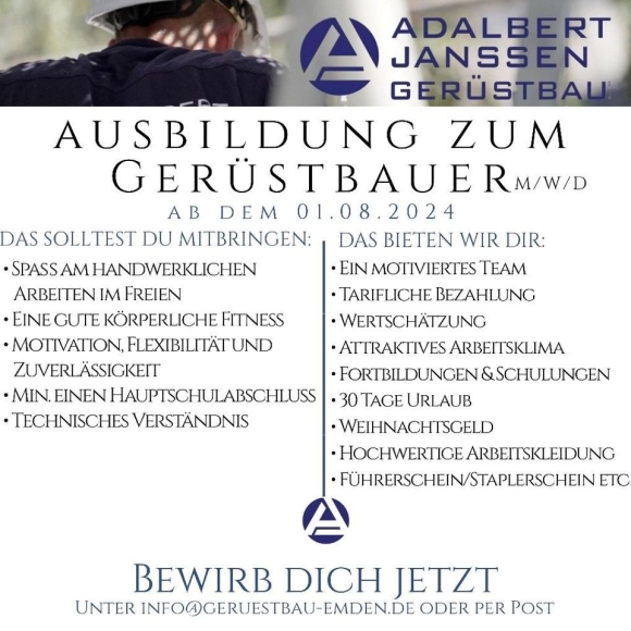 Ausbildung als Gerüstbauer in Emden!