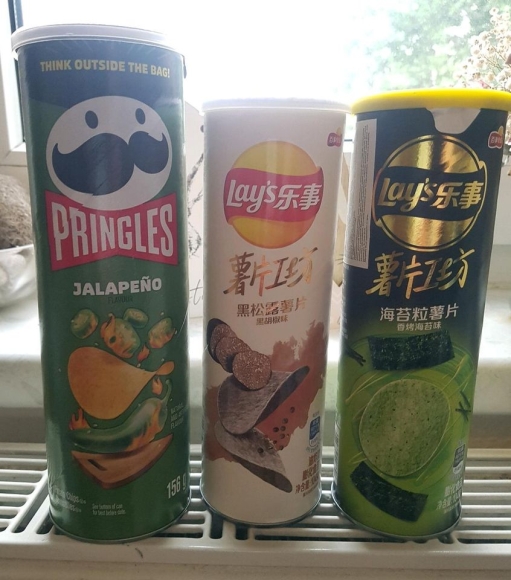 Ausländische Chips Pringles und Lays