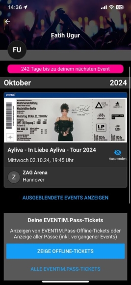 Verkaufe hiermit insgesamt 6x Stehplätze für das Ayliva Konzert in Hannover in der ZAG Halle am 02.10.2024