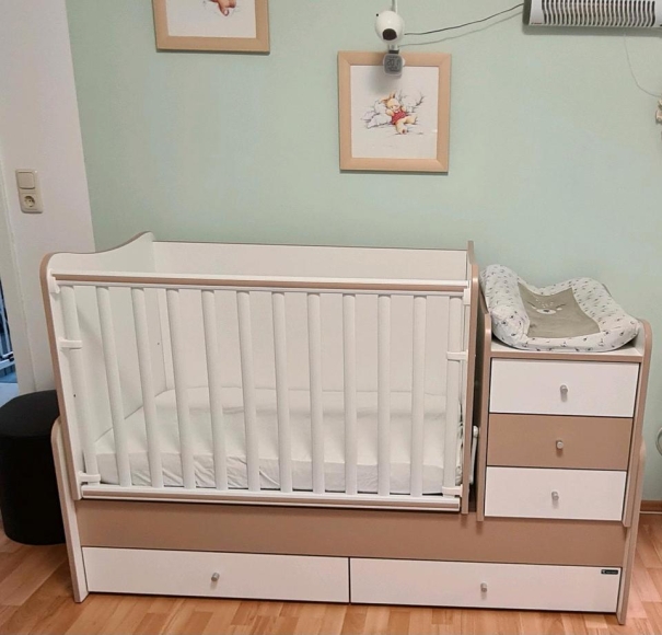 Beschreibung: Umbaubares, mitwachsendes Babybett, Babybett-Kombi Maxi Plus Lorelli (mitwachsendes Babyzimmer-Möbelset):