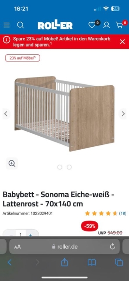 Ich verkaufe hier ein gut erhaltenes Babybett ohne Matratze. Das Bett ist schon abgebaut und abholbereit.