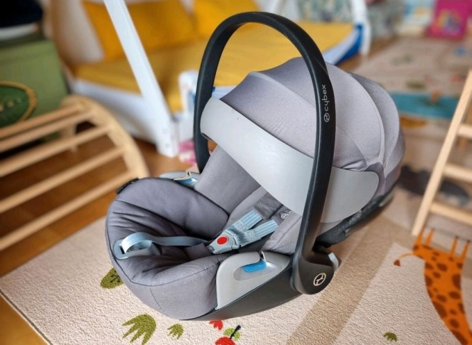 Babyschale Cybex Platinum Cloud Z i-Size Soho Grey mit Neugeboreneneinsatz.