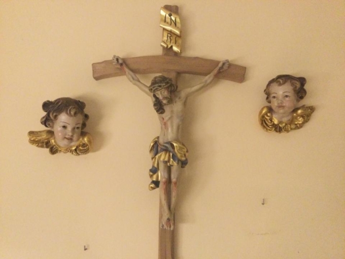 Wir haben ein sehr schönes gebogenes Kreuz und 2 Engelsköpfe (links und rechts) sehr fein gearbeitet abzugeben.
