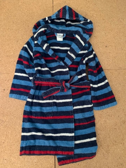 Ein schöner dreifarbig gestreifter Bademantel in Größe 116. Übergabe auch in Dresden Striesen möglich.