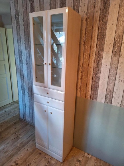 Weiss Hochglanz , Schublade und Rückwand mit kleinen macken die sich leicht beseitigen lassen.