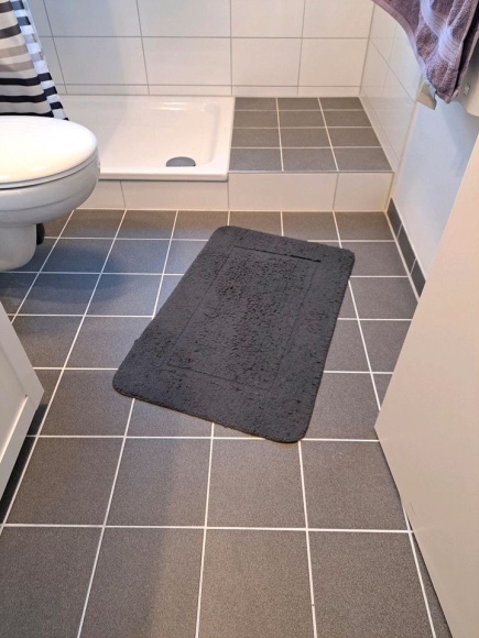Ich verkaufe einen Badezimmerteppich in dunkelblau/ anthrazit. Durch die schlichte Farbe passt er in jedes Badezimmer. Der Teppich ist in einem gepflegten Zustand. Die Maße sind etwa 40 cm × 70 cm.