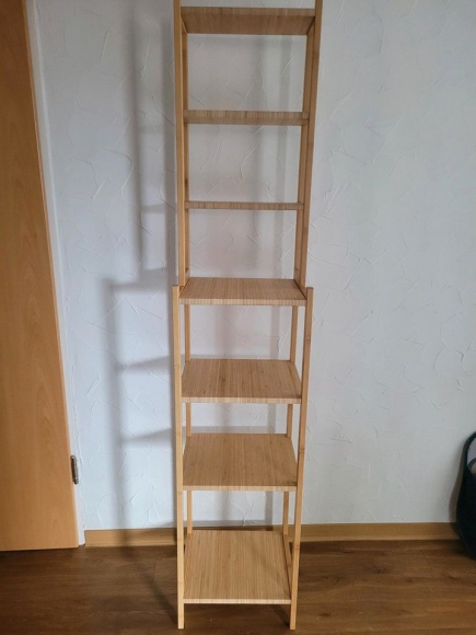 Ich verkaufe mein sehr gut erhaltenes Badregal in Holzoptik. Das Regal hat drei breite Böden unten und drei schmalere Böden weiter oben.