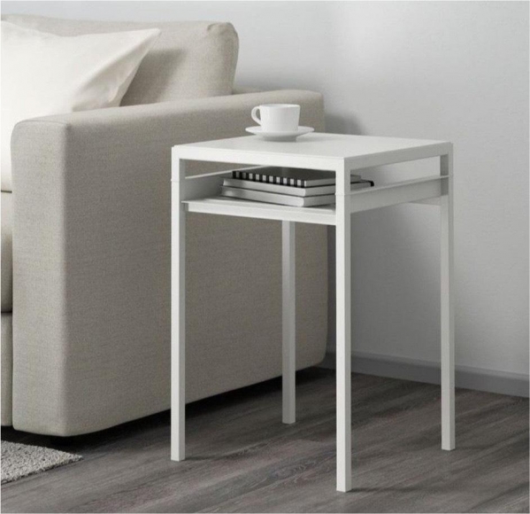 Beistelltisch Nyboda von Ikea mit Wendeplatte in weiß/grau