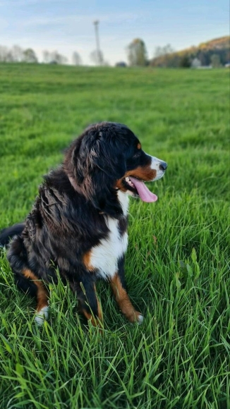 Anderen Hunden gegenüber ist er neugierig und verspielt.