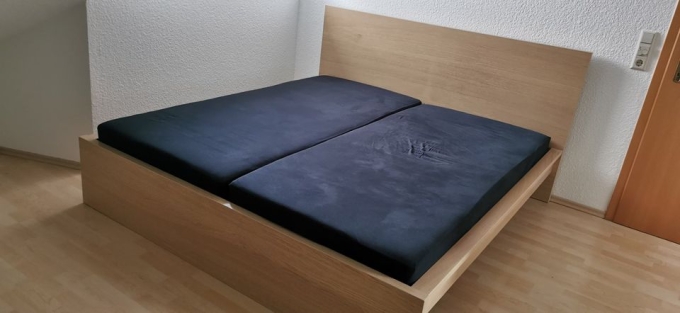Verkaufe mein Bett inklusive zwei Unterschubladen und zwei passenden Lattenrosten. Das Bett ist in einem guten Zustand und bietet viel Stauraum. Bitte beachten Sie, dass die Löcher für die Montage der Lattenroste bereits etwas abgenutzt sind.