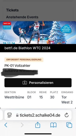 Biathlon auf Schalke Westtribühne 3 Plätze nebeneinander