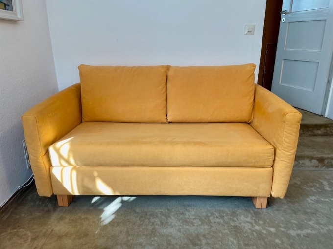 Biete ein sehr gut erhaltenes Schlafsofa von der Marke Franz Fertig. Ohne Flecken, Füße in Buche. LF 130x210 cm. Bezug Yak, Farbe Curry (sehr Pflegeleicht). Maße:155x90x85. Aus Nichtraucher Haushalt ohne Haustier. NP 1.400€. Für Selbstabholer in Stuttgart Vaihingen.