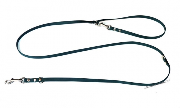 Durch die 3 integrierten Ringe lässt sich die BioThane Hundeleine in dunkelgrün dreifach verstellen und ermöglicht somit eine große Flexibilität wie sie und ihr Hund/Hunde es gerade brauchen.