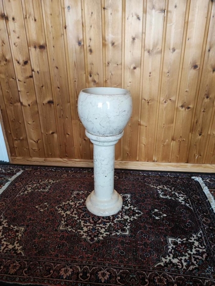 Blumensäulen eine in Beige, marmoriert aus Keramik. 42 cm, mit Topf 60 cm. Und zwei schwarze, marmoriert ohne Topf und 42 cm hoch. Abholung in Marne in Dithmarschen. Oder in Scheggerott. Preis für alle drei zusammen.