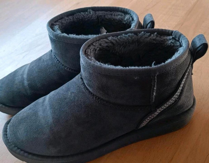 Boots mit Fell Stiefel Stiefelette grau Glitzer Gr 39
