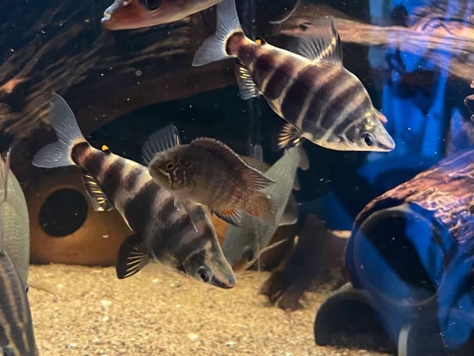 1 davon hat eine kleine Flosse kann aber normal schwimmen und ist nicht eingeschränkt .
