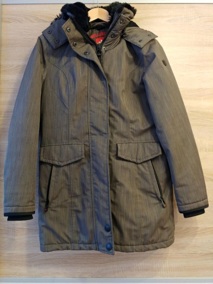 Tolle Highlights: Zwei Wege Reißverschluss, viele (versteckte) Taschen, Kunstfell zum weg machen, genauso wie die Kapuze an sich. Kann an der Taille durch Knöpfe enger gemacht werden.