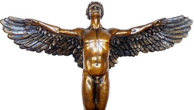 Bildschönes Bronze Kunstwerk sehr großer Ikarus auf Marmorsockel,