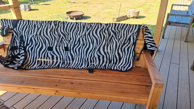 Ich verkaufe gut erhaltene und wenig benutzte Buccas Zebra Fliegendecke 125cm, da sie unseren Isländern am Hals zu klein ist. Ich habe sie gewaschen, trotzdem befinden sich vereinzelt noch Haare dran.