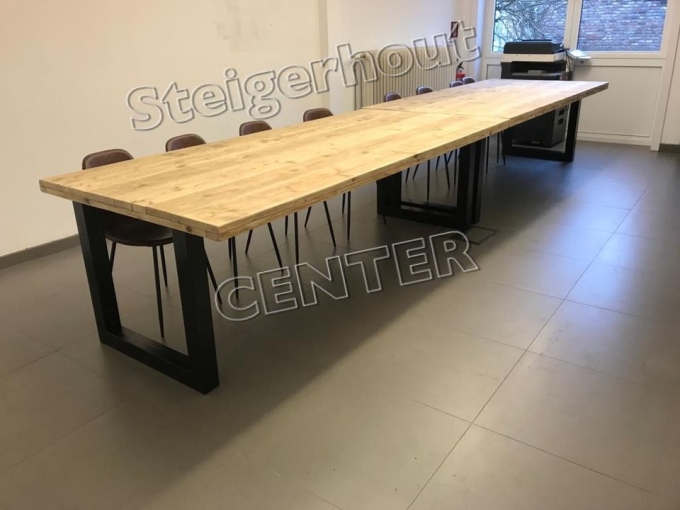 Starke industrielle Baugerüstholztische mit den Stahltabellenbeinen und einer Baugerüstholztischplatte. Die Suche nach einer passenden Bank, einem Couchtisch oder einem Stehtisch ist alles möglich.