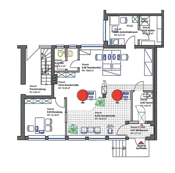 Bei den Räumlichkeiten handelt es sich um die ehemalige Sparkassen Geschäftsstelle in Strauch