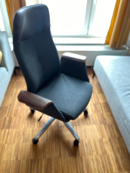 Ein wunderschöne Bürosessel…. Höhenberstellbar und Rückenlehne verstellbar. Armlehne Leder sonst ein grauer Filzstoff. Sieht im Büro und Wohnzimmer elegant und schick aus.