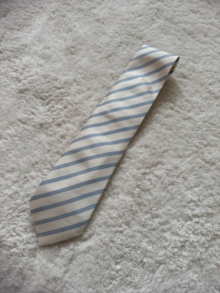 Verkaufe hier eine elegante Krawatte von Canali in Creme Ton mit hellblauem Nadelstreifen