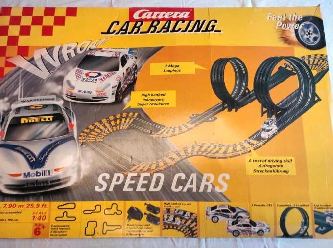 Gebrauchte Bahn mit sieben Autos. Kleinteile können fehlen. Als Erweiterung einer vorhandenen Bahn. Kann aber auch so aufgebaut werden. Keine Garantie, Rücknahme oder Gewährleistung da Privatverkauf.