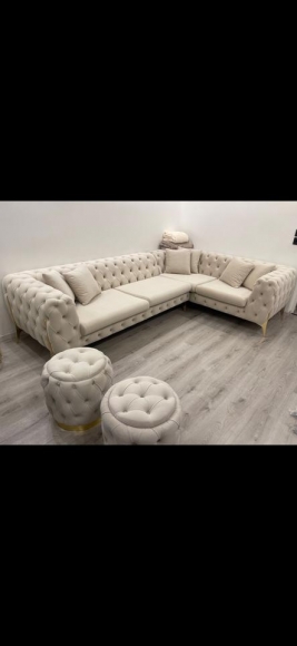 Verkauft wird eine Chesterfield L-Couch (195 x 310cm) und die 6 beigen Kissen dazu. Die Couch ist in einem super guten Zustand, hat keine Flecken oder andere Gebrauchsspuren, weil sie kaum benutzt wurde. Sie sieht nicht nur optisch sehr schön aus sondern ist auch mega bequem.