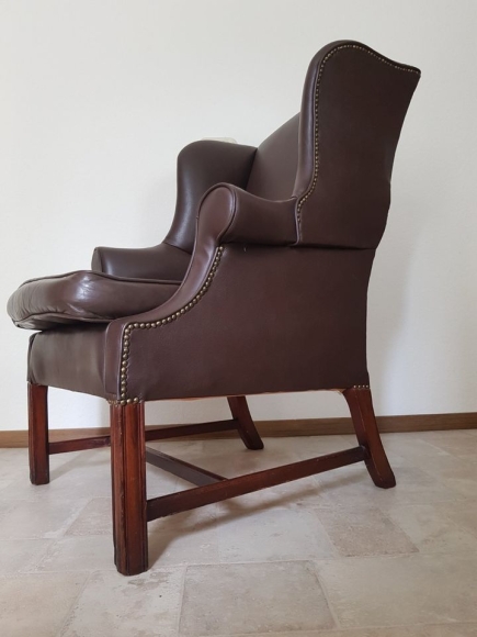 Wir verkaufen unseren formschönen Chesterfield Sessel aufwendig handgefertigt, rundum mit Nieten versehen.