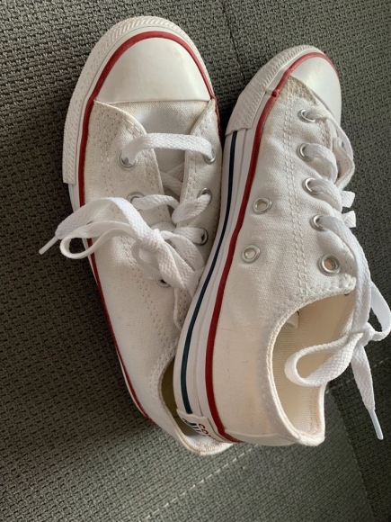 Sehr schöne weiße Convers, in Gr. 33 müssten vielleicht nochmal in die Waschmaschine gut erhalten. Versand für 3,99€ möglich.
