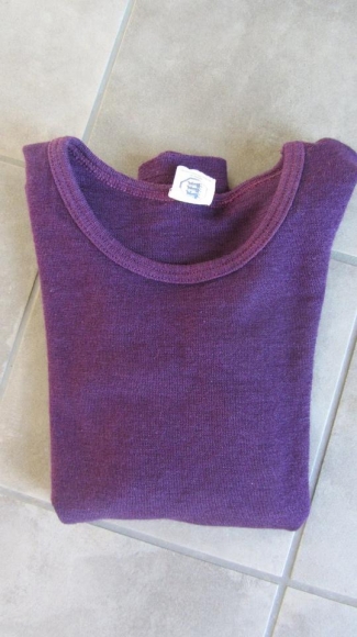 Ein Wolle Seide Langarmshirt von Cosilana, guter, getragener Zustand. Ich habe einen kleinen weißen Fleck am Ärmel entdeckt. Könnte sein, dass er noch rausgeht. Größenschild wurde entfernt, passt ab 122/128.