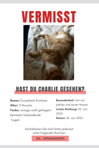 Ich vermisse seit dem 02.06.2025 meinen kleinen Kater. Er ist wie jeden Tag rausgegangen und kam dann einfach nicht mehr nach Hause.